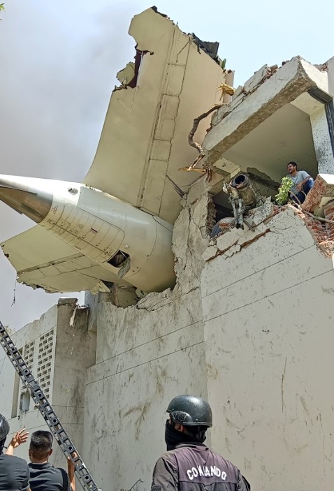The crash site, a residential area, saw significant damage, with debris scattered across the hostel’s dining hall.
