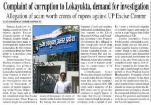 Bhopal: Alleging a bigger liquor scam in Uttar Pradesh than one that came to light in Delhi in which several Aam Admi Party (AAP) leaders including former Delhi chief minister Arvind Kejriwal are accused a senior journalist from Prayagraj Vinay Mishra has lodged a complaint to Lokayukta office in Lucknow.